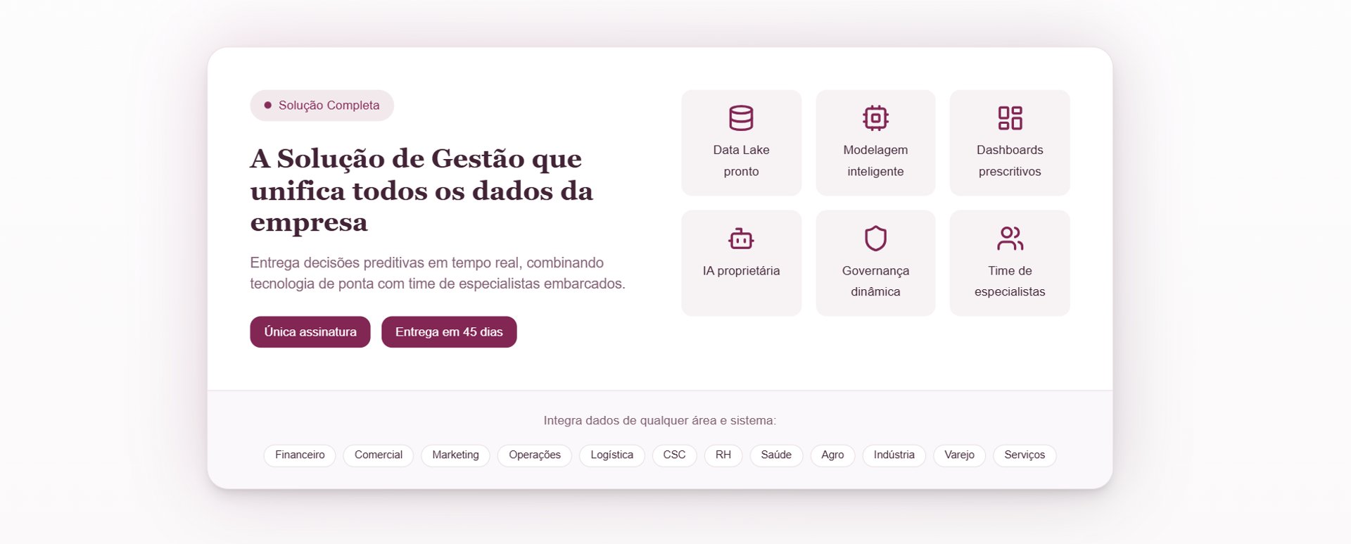 Entrega decisões preditivas em tempo real, combinando tecnologia de ponta com time de especialistas embarcados.